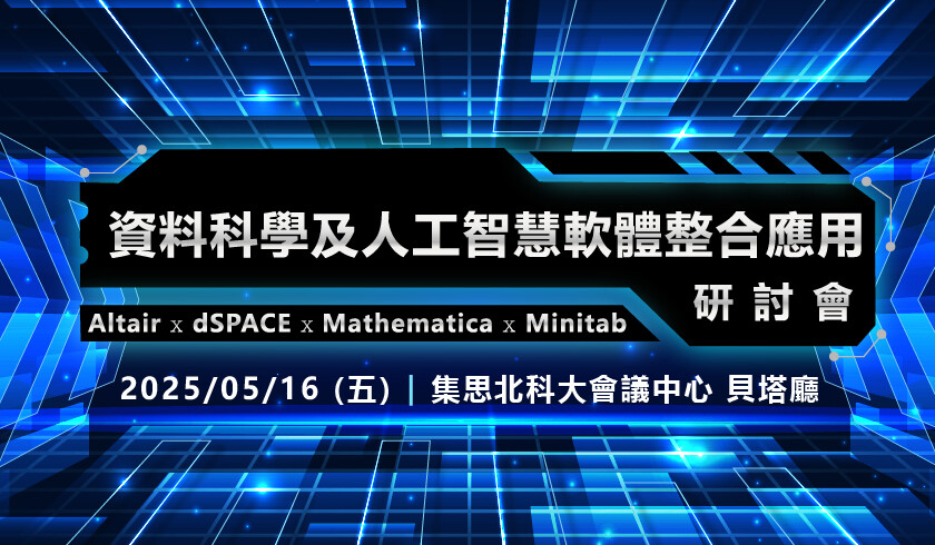 我們誠摯邀請您參加即將舉行的研討會,本次大會將聚焦於四大頂尖產品,攜手 Altair、dSPACE、Mathematica 及 Minitab,深入探討最新技術的應用與整合。