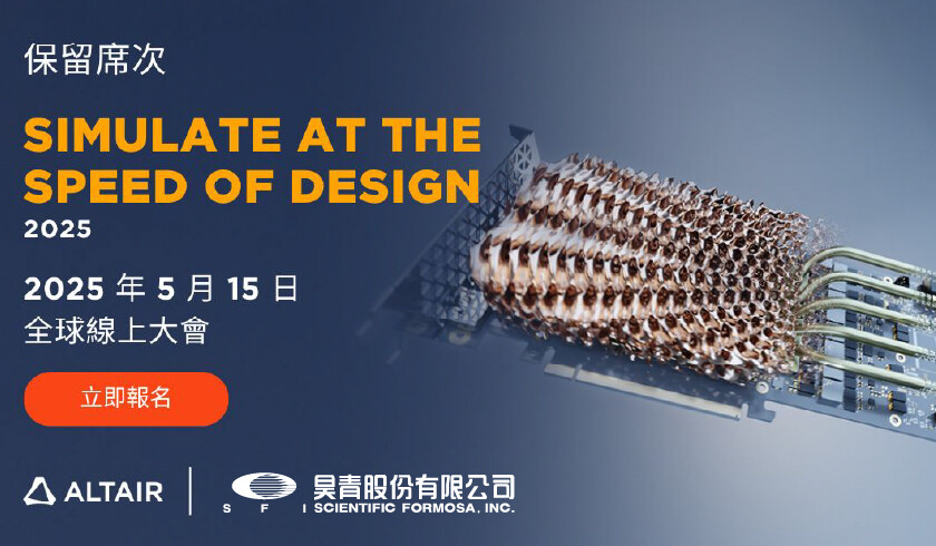 歡迎加入我們,探索如何透過結合軟體、支援以及來自業界同儕和 Altair 專業知識,運用模擬 (CAE、FEA) 來提早開發成熟設計、縮短產品開發時間,並將風險和成本降至最低,從而提升您的效率和效能。