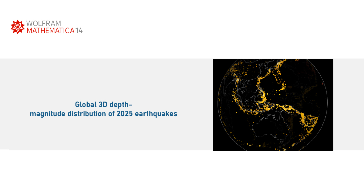 透過 Wolfram 繪製 2025 年全球地震深度-震級分佈圖